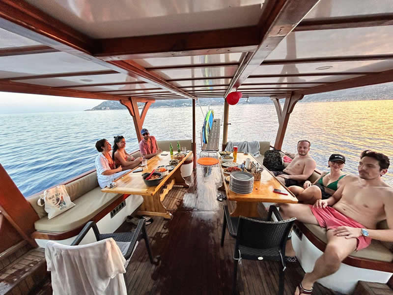 Leaving the harbour at approx 7.30PM, enjoy an evening meal inside the bay of Limanağzı at sunset. On Request, fresh fish fish will be caught that day By Kaptan İbo.